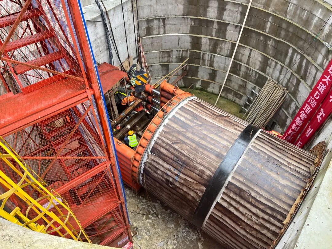 本次采用的預制頂管技術屬非開挖管道鋪設工藝,通過頂進設備將高性能混凝土管節按設計標高精準頂入地層。單節頂管長2.5米、外徑4.14米,采用C50混凝土并達到P8抗滲等級,確保管道在復雜地質與高水壓環境下的結構安全。相較于傳統開挖施工,該技術有效規避了對道路交通、周邊建筑及城市環境的干擾,尤其適用于建成區的地下管網改造。施工中,管道接口采用承插式連接并加裝遇水膨脹密封條,形成多重防滲體系,進一步保障了系統密封可靠性。